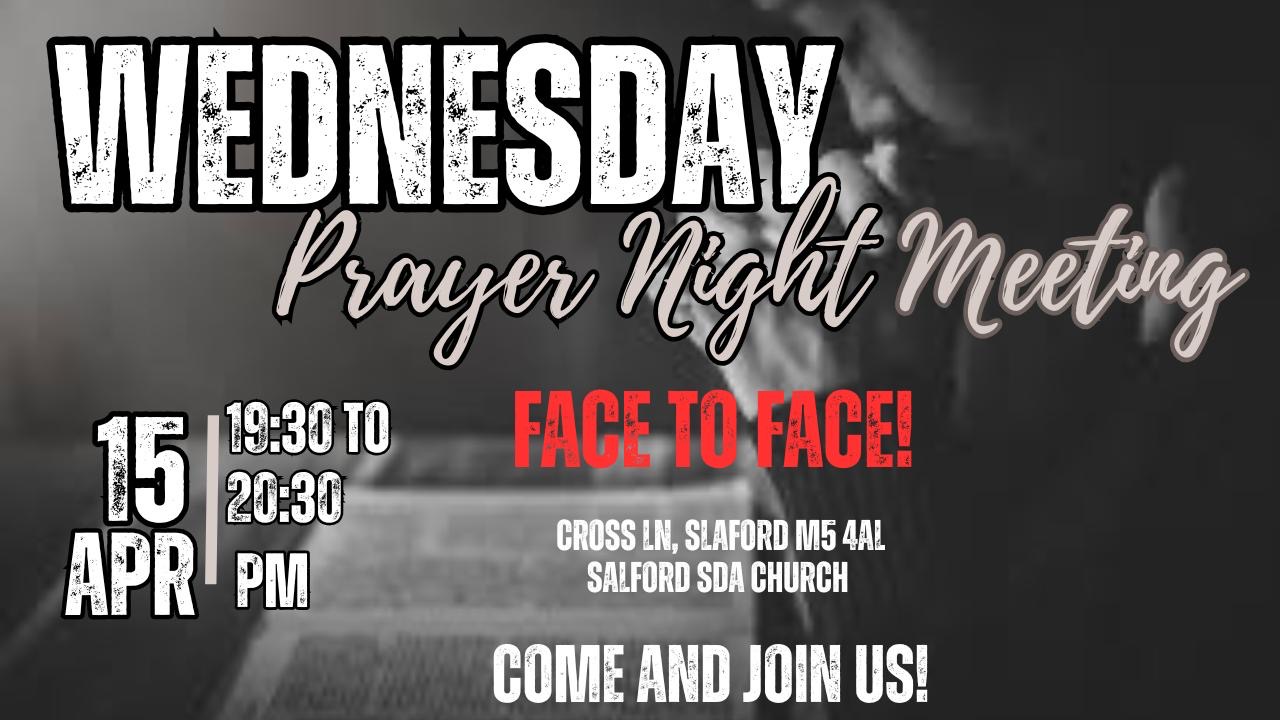 Salford SDA Prayer Meeting will be in the sanctuary this Wednesday and once a month from then on. See you and your guest.